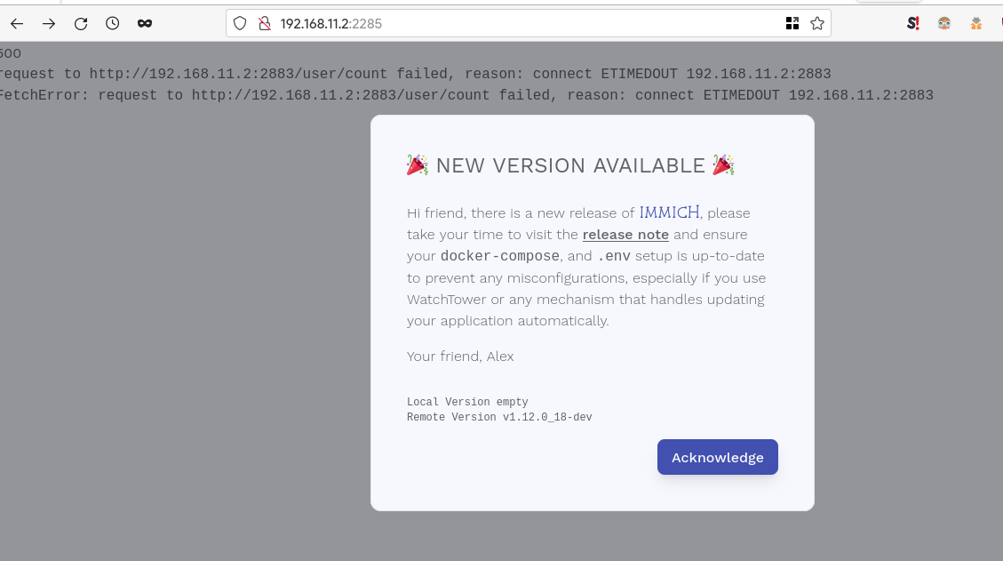 curl --location --request POST 'http://192.168.11.2:2283/auth/signUp' \and it was successiful.In the end I checked the browser console by pressing F12, and this is what I got
