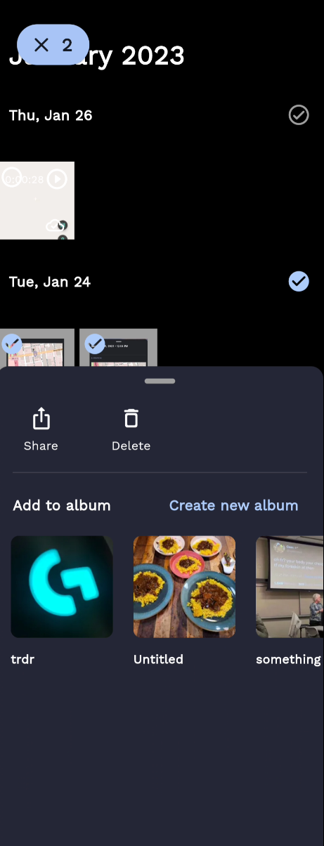 I'm happy to change the below "Add to album" to use the same UI I came up with #1413. Something like this below: