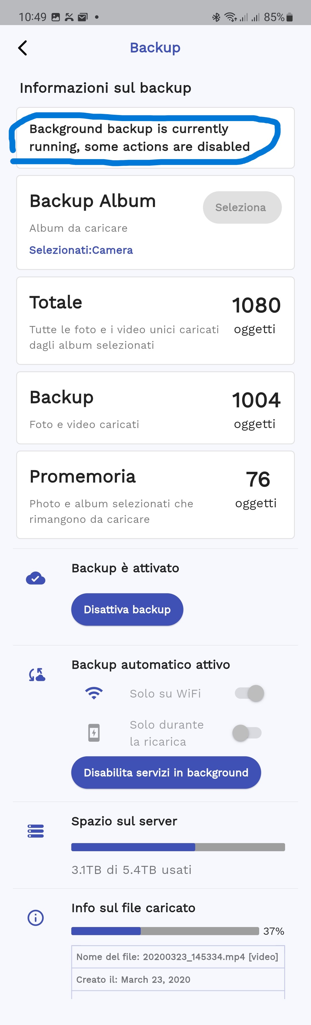When the app is open, the backup process start and all videos are in queue for a new upload.