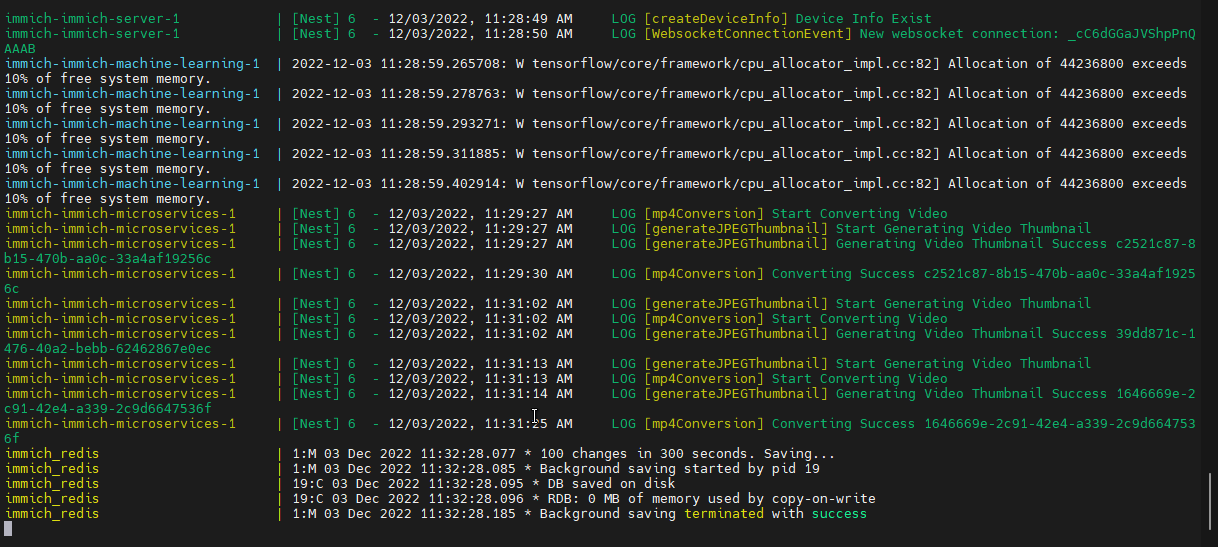 @Sirtz My machine learning stuff kicked in. Let's try to disable the machine learning container and try upload again to see if it is the cause.