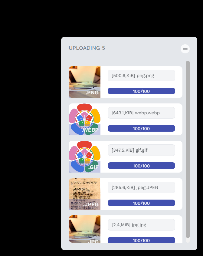 I know this issue is closed, so not sure if you want me to make a new one? This is for the web upload. A few more dark variations I think need to be added for the uploading popups: