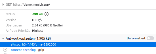 [BUG] Demo instance announces HTTP3 but doesn't use it #532