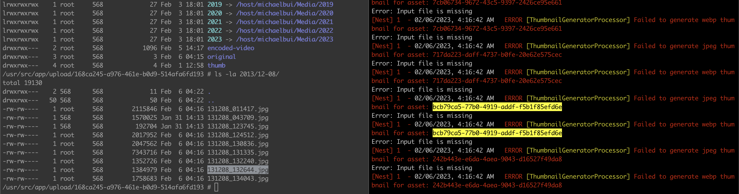 immich), notmicroservicesso it can’t access the original files to generate the thumbnails. After I re-organize the structure with no additional mount, the thumbnail generator job has run fine & I can see the photos on the client UI.However, should the UI should the assets with blank thumbnails instead of not showing the assets at all?