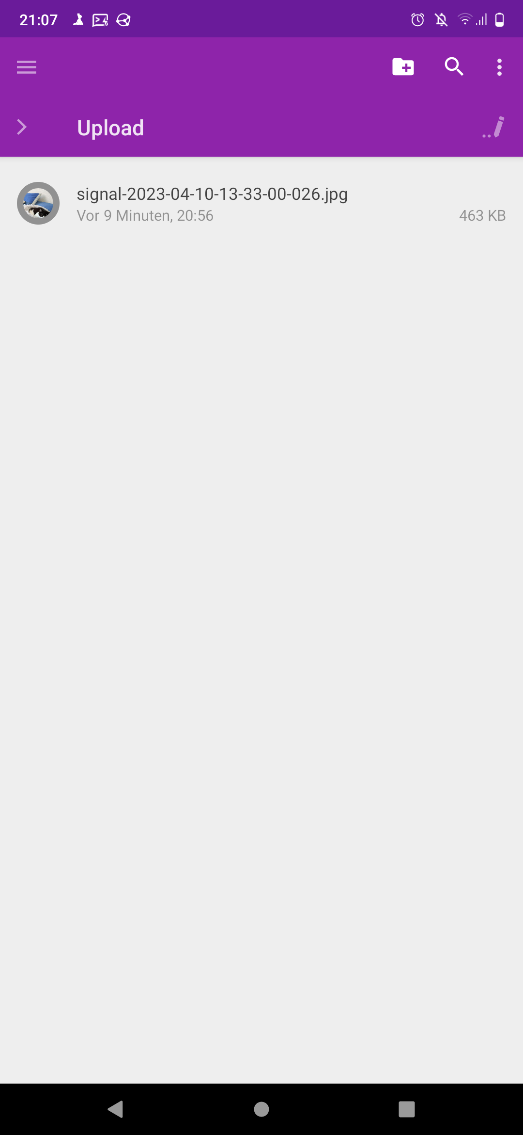 For testing purposes: I have duplicated an image file and a) moved it to the Upload folder using Termux (Terminal) and b) the Gallery-App.