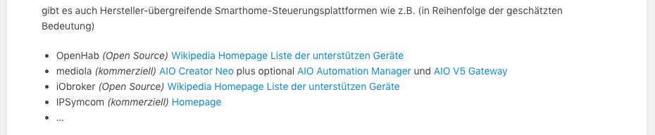 I think it would be a good idea to trail external links with a related icon, so they can directly distinguished from internal links (without the need to specifically pay attention to the underlaying URL). The icon also comes in handy as separator when lining up multiple external links (no need for separation with comma).