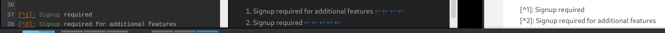 Support for Markdown footnotes through the markdown-it-footnotes.
