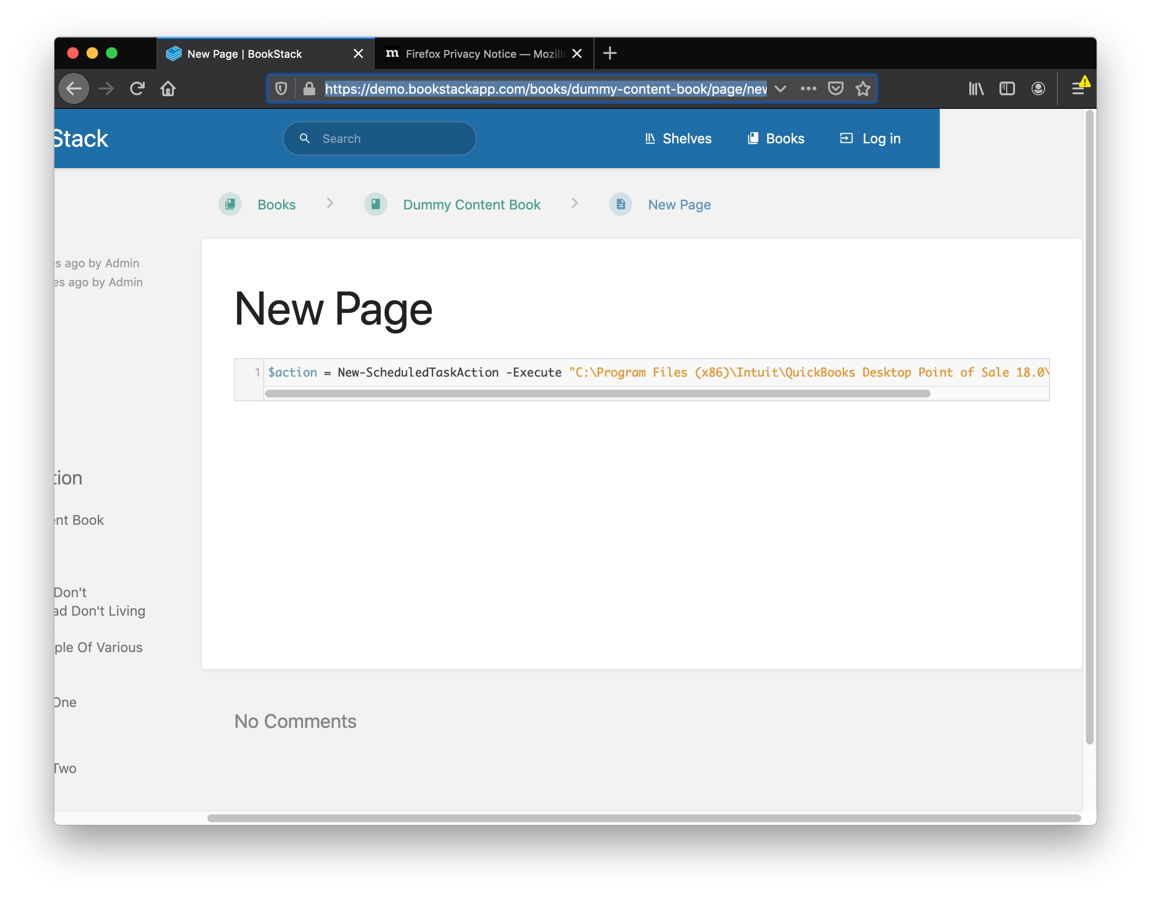 Open in Firefox: https://demo.bookstackapp.com/books/lorem-ipsum-dolor/page/draft-page