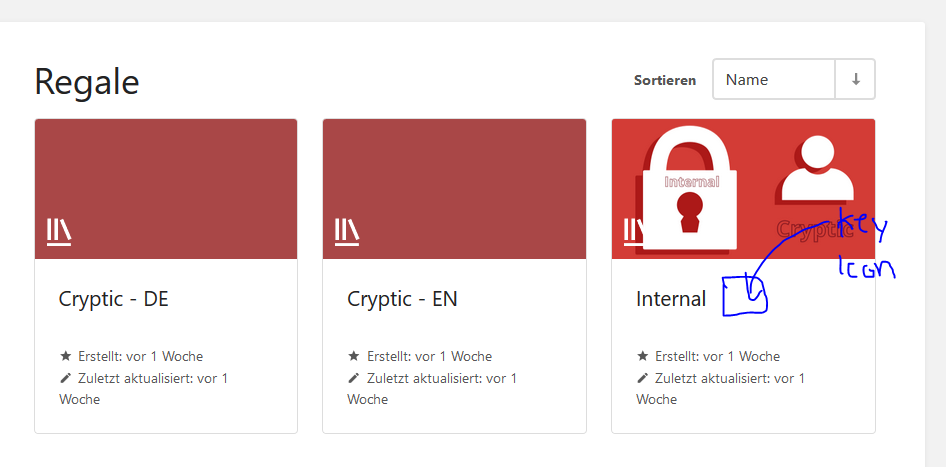 If a shelf or a book is made accessible only to certain persons, it would be useful to mark this with an icon - see the picture in the appendix. Or Additionally with a text, for example: "The shelf/book is allowed for certain users".