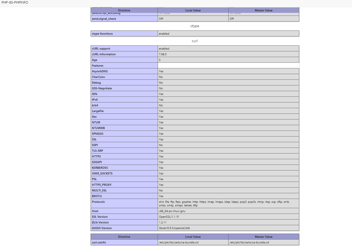 And I checked my PHP-info in PHP8, curl is a default extension that has already been installed.