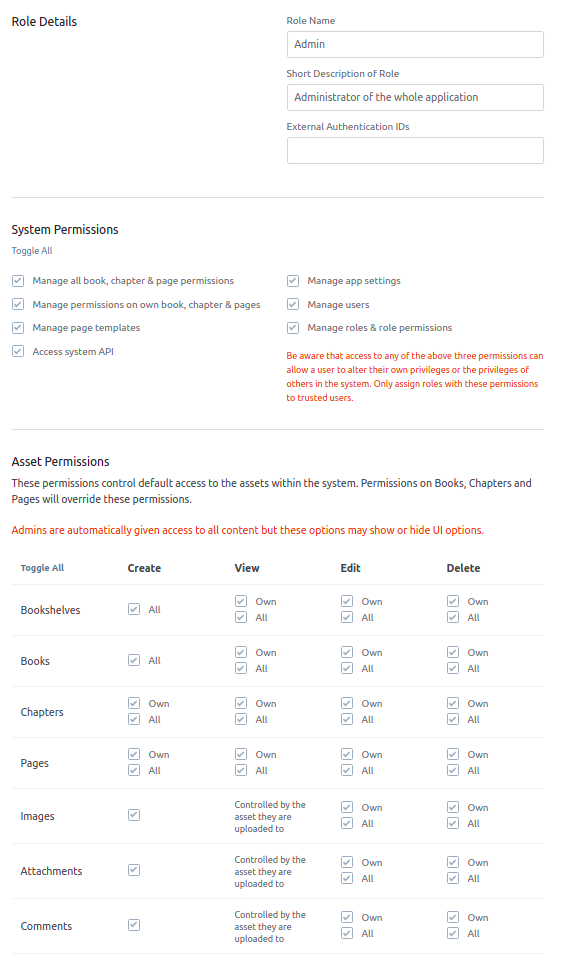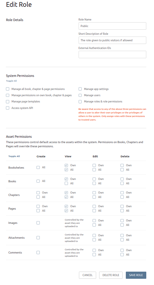 As an added tip: Book and chapter permissions will auto-cascade to child items, No need to set permissions on a page if they're the same as the parent chapter/book.