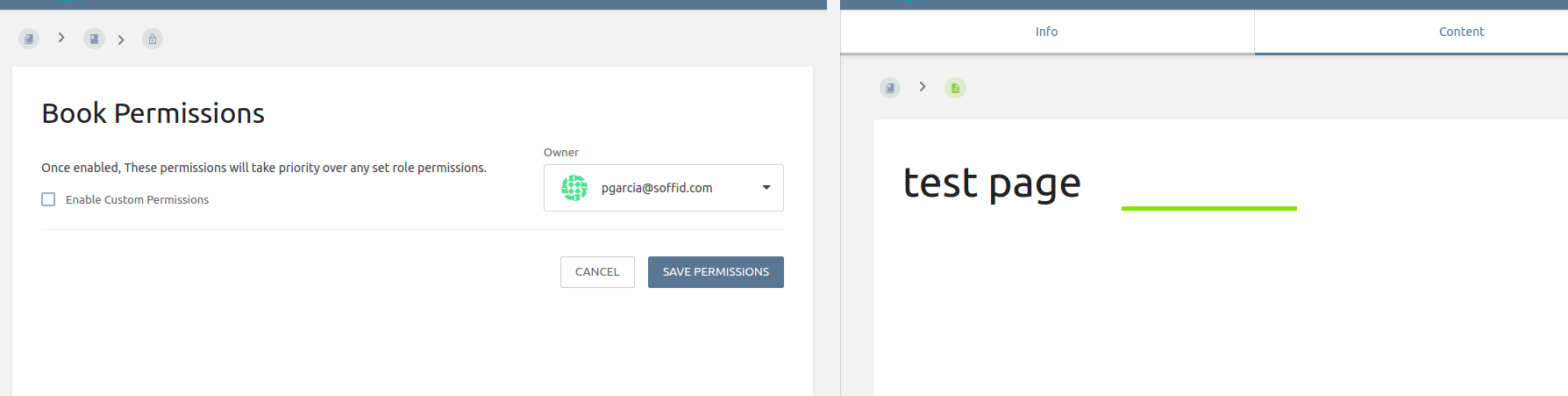 Within your Page/Book permission pages, I noticed in your screenshots that the "Enable custom permissions" checkbox is active/focused which indicates it may have been selected before taking the screenshot. Are you saving permissions after selecting that checkbox? Or is the checkbox unchecked by default and you've checked it before taking the screenshot?