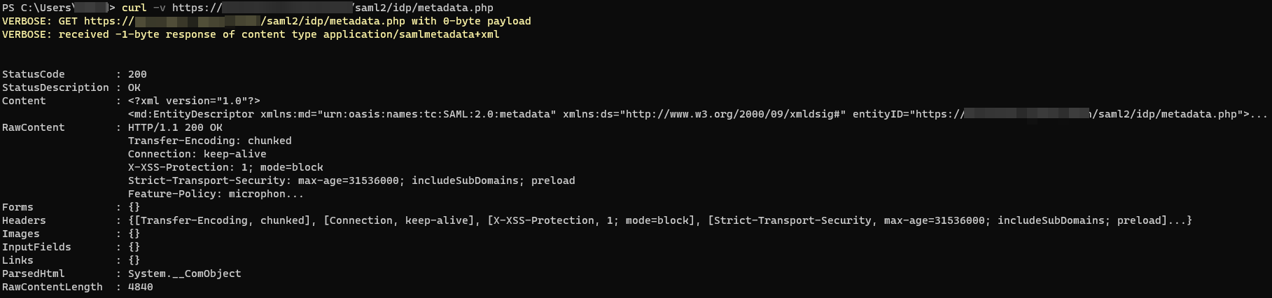 SAML2_IDP_ENTITYIDand see if you get back a 200 response code with the expected metadata content?For example: