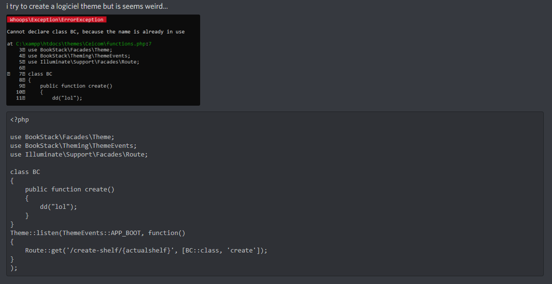 i have try rename the classe: ThisClassNotExistInPHPOrInBookstack