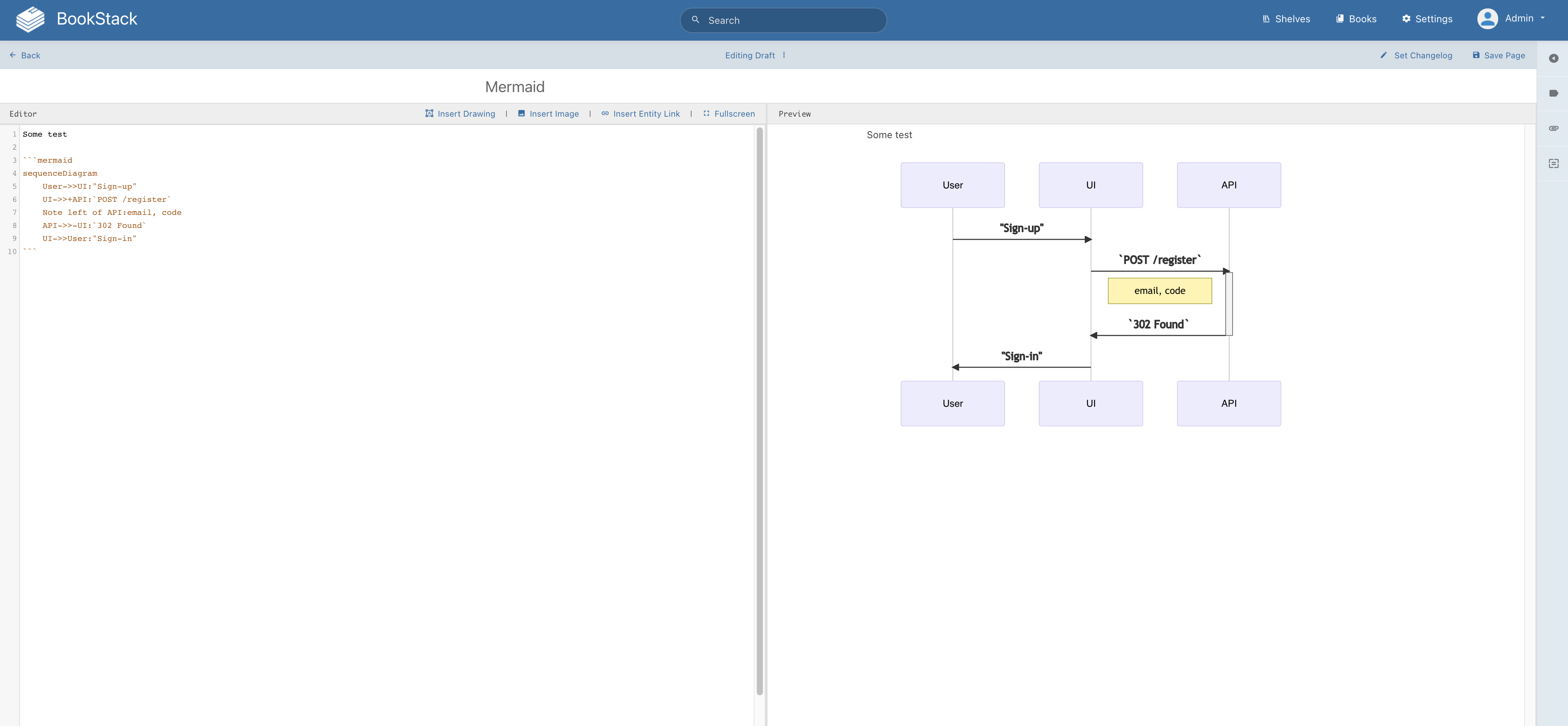 This is really a simple PR with addition of Mermaid into MarkdownIt editor, that BookStack is using.