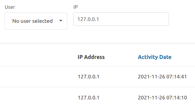 9cac6faAdd IP address search field mock0e25298Fix label and input box error8dee3d3Add label translationa12e346Add filter of user IP882f195Add margin right for IP input box4e63554Add an hidden submite686b2cShow current search IPa932544Add index for user IP address2fd7b1fUpdate index name to 'activities_ip_index'72d1996Search IP by partial-equal📊 Changes