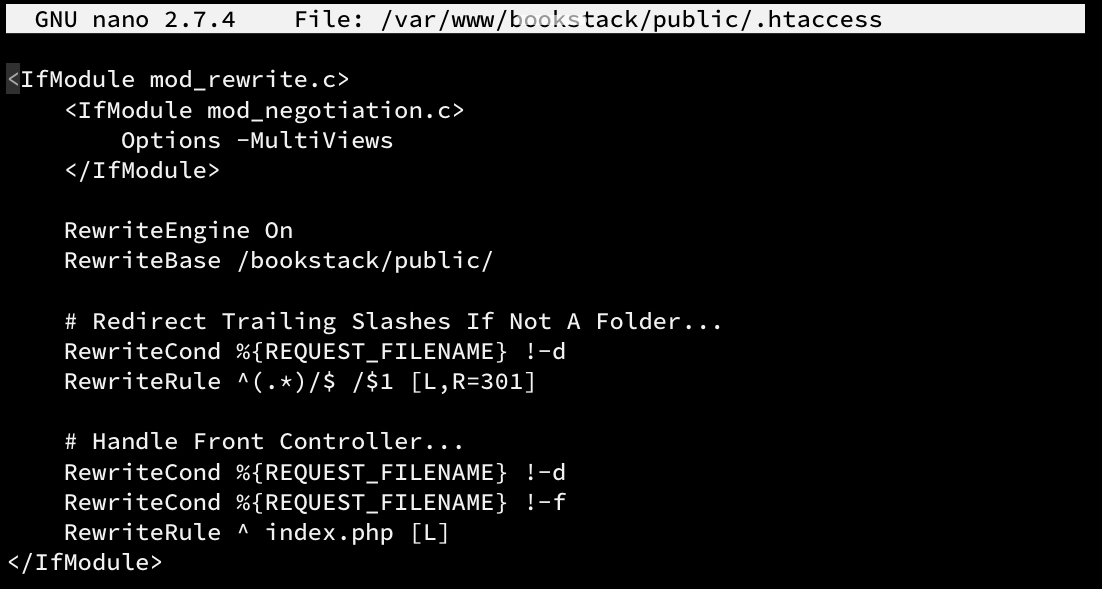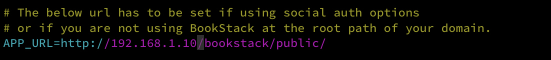 But again the hint that you should not use this configuration in production! BookStack is designed to use an own domain with the DocumentRoot pointing to the public directory, so config files are not accessible in the browser.