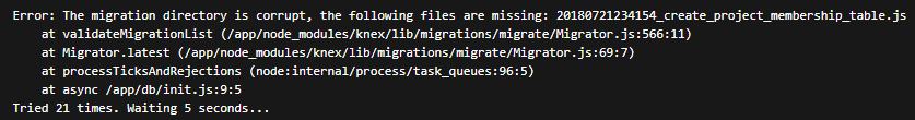 [Error while deploying] The migration directory is corrupt, the following files are missing: 20180721234154_create_project_membership_table.js #184