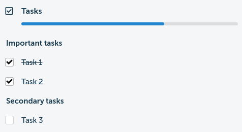 Separators will work like normal tasks, but won't contribute to the percentage completion, won't have a checkbox and will be bold by default: