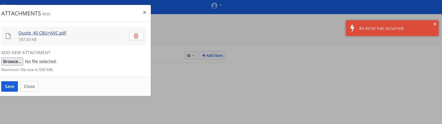 Uploading an attachment in "My Vault" works without issue.