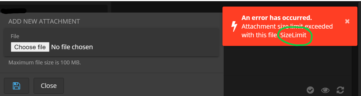 Attachment size limit error does now show the correct size limit when it is triggered due to an attachment being too big #1351