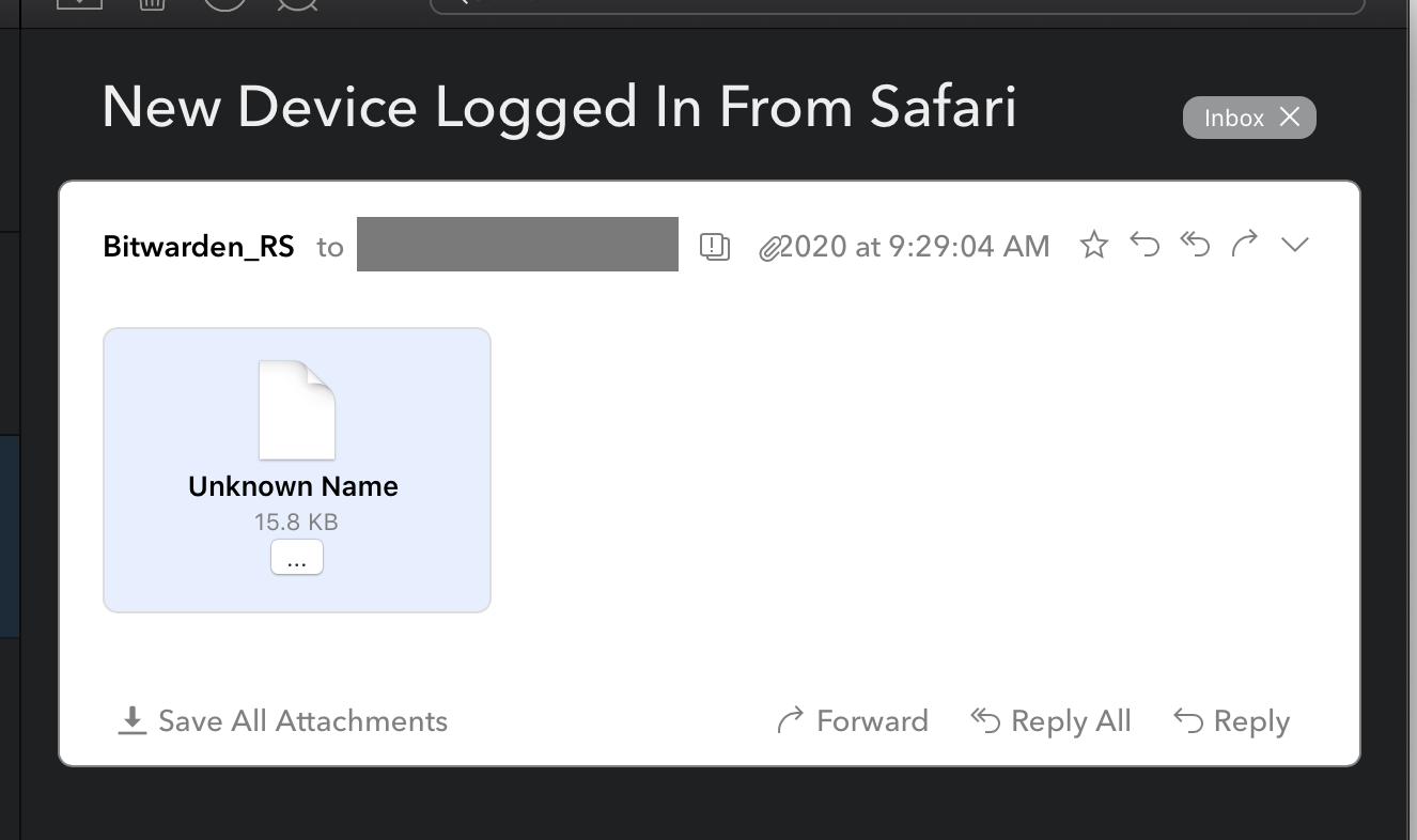 Emails sent from Bitwarden_rs show up as blank attachments in Airmail.