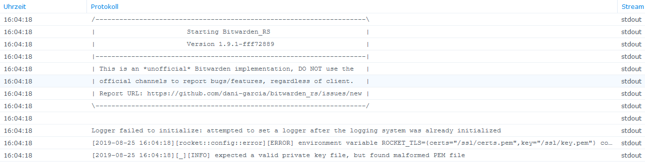 However i have in the same directory the new generated certificates and with them the bitwarden container wont start anymore. I get the following error: