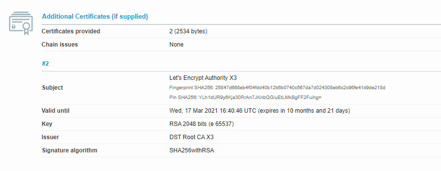 Self signed cert or not: not self-signed (Let's Encrypt)