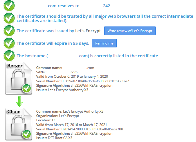 I tried to use some tools mentionned in this post to check for the certification, both are reporting that certificates can't be found, or certificates not present, etc...