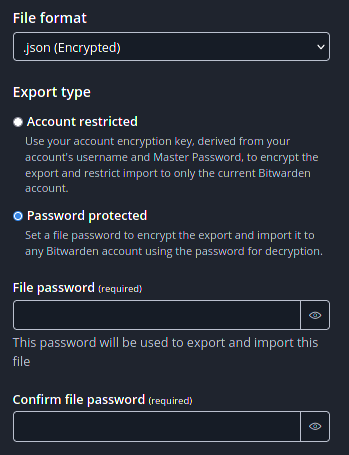 Password Protectedexport type.The first can only be used for the exact same organization, and not imported into an other.